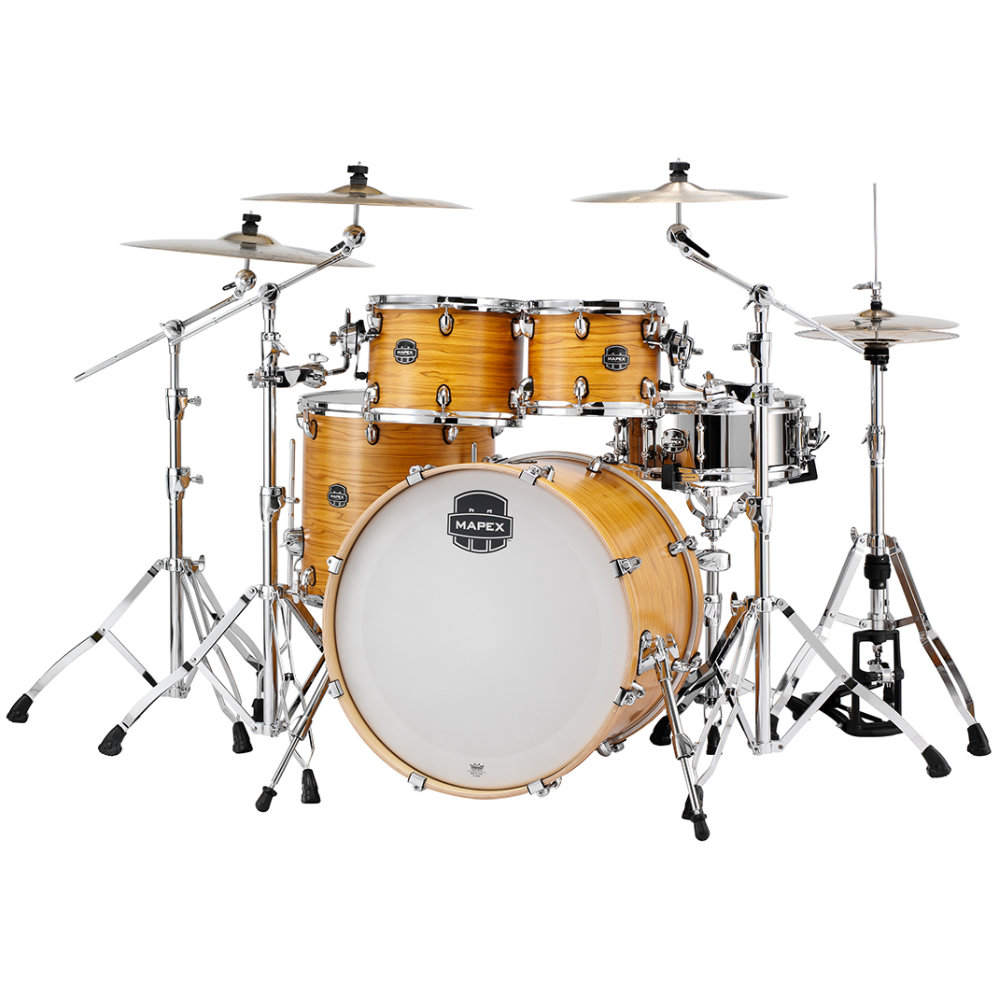 Batteria acustica Mapex Armory Rock finitura Desert Dune con hardware cromata e rullante Tomahawk incluso. Fusti realizzati in multistrato di betulla/acero/betulla da 7,2mm con bordi SONIClear. Incluso nel kit il rullante Armory Tomahawk Snare Drum