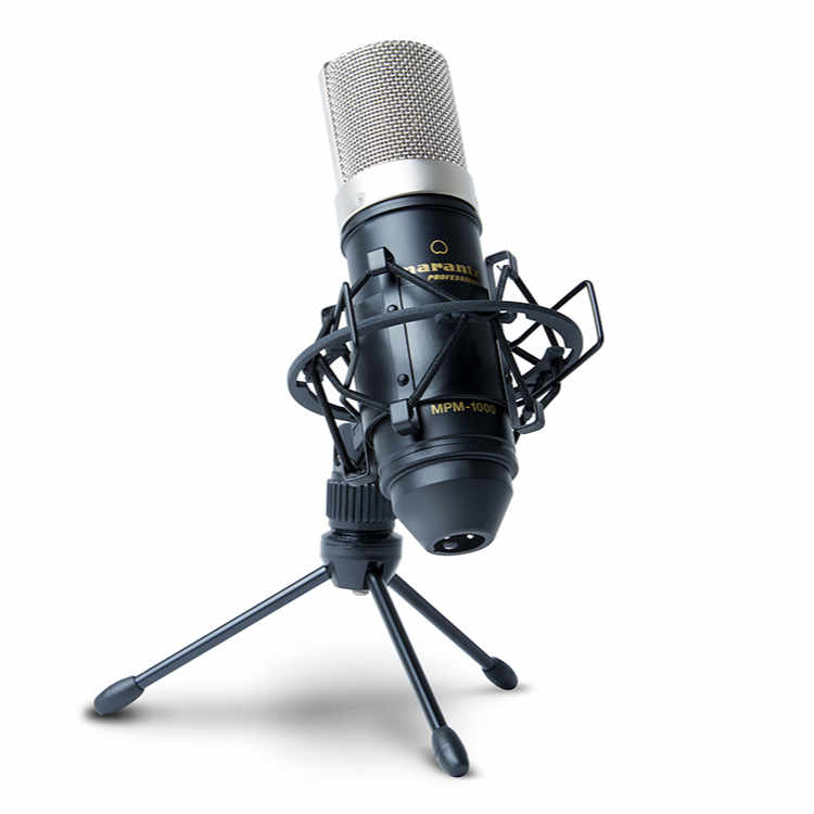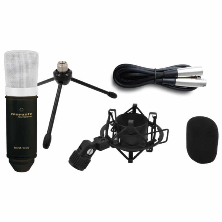 Microfono da studio MARANTZ MPM-1000 ideale per podcast e per la ripresa della voce grazie alla capsula a diaframma largo a condensatore. Kit completo di asta da tavolo, cavo XLR e filtro antipop.