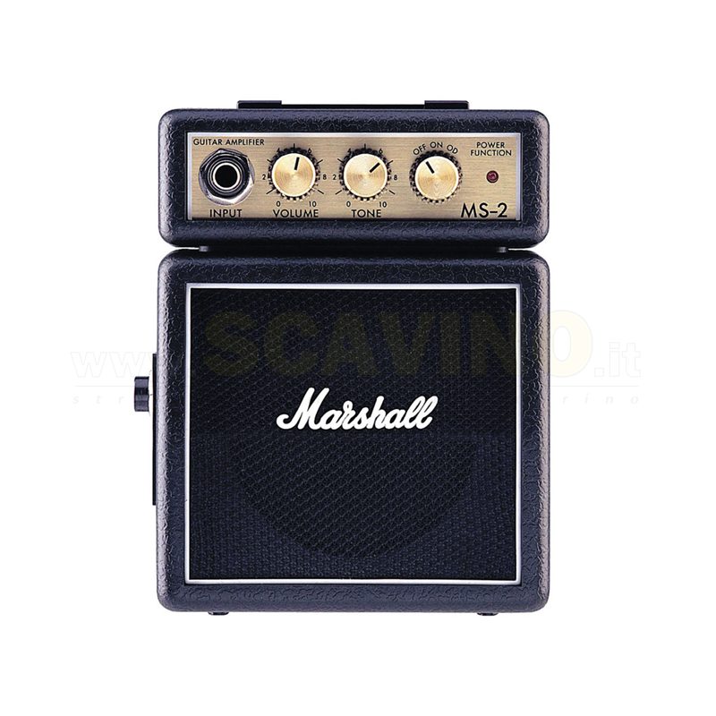 Il Marshall MS-2 è il massimo in termini micro amplificatori portatili a batteria/adattatore di rete. 1 Watt di suono Marshall in un case piccolo che misura solo 14 x 11 x 6 cm. Questo potente micro Marshall half-stack è dotato di modalità Clean e Overdrive commutabili. Un controllo di tono singolo fornisce un controllo pieno di bassi e alti