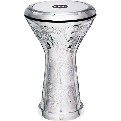 Doumbek 8 1/2” X 17 1/8” finitura in alluminio incisa a mano. I Darbukas e Doumbeks sono strumenti originali dei paesi del Medio Oriente. Di grande popolarità in questi paesi, questi strumenti sono presenti nella musica e nei ritmi della vita quotidiana. Sono approdati nella musica moderna e Meinl offre una vasta selezione di Darbukas e Doumbeks di alta qualità.