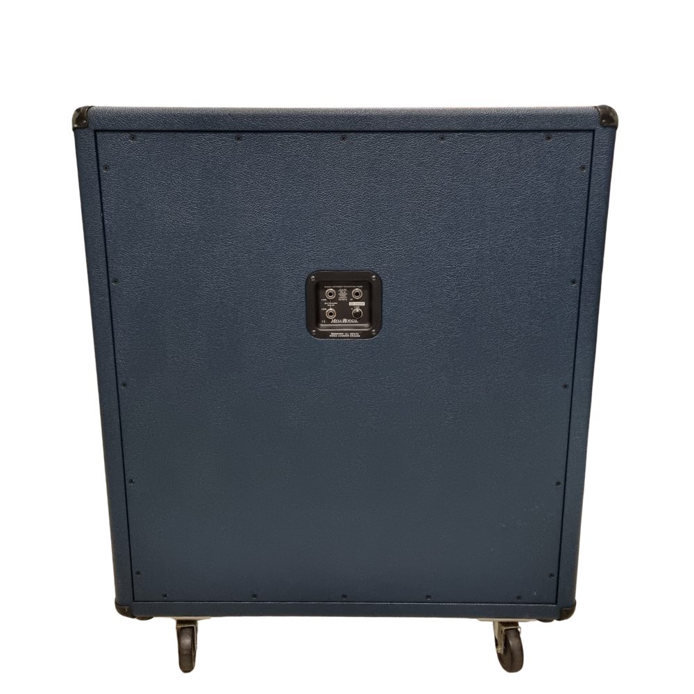 Made in USA – Blue Bronco W/Black grill – Closed Back 4x 12″ Celestion Vintage 30s / Rear Mounted Cone – 240W 8 Ohm Mono / 4 Ohm Stereo Impedance – Mono + Stereo Output – Original Cover