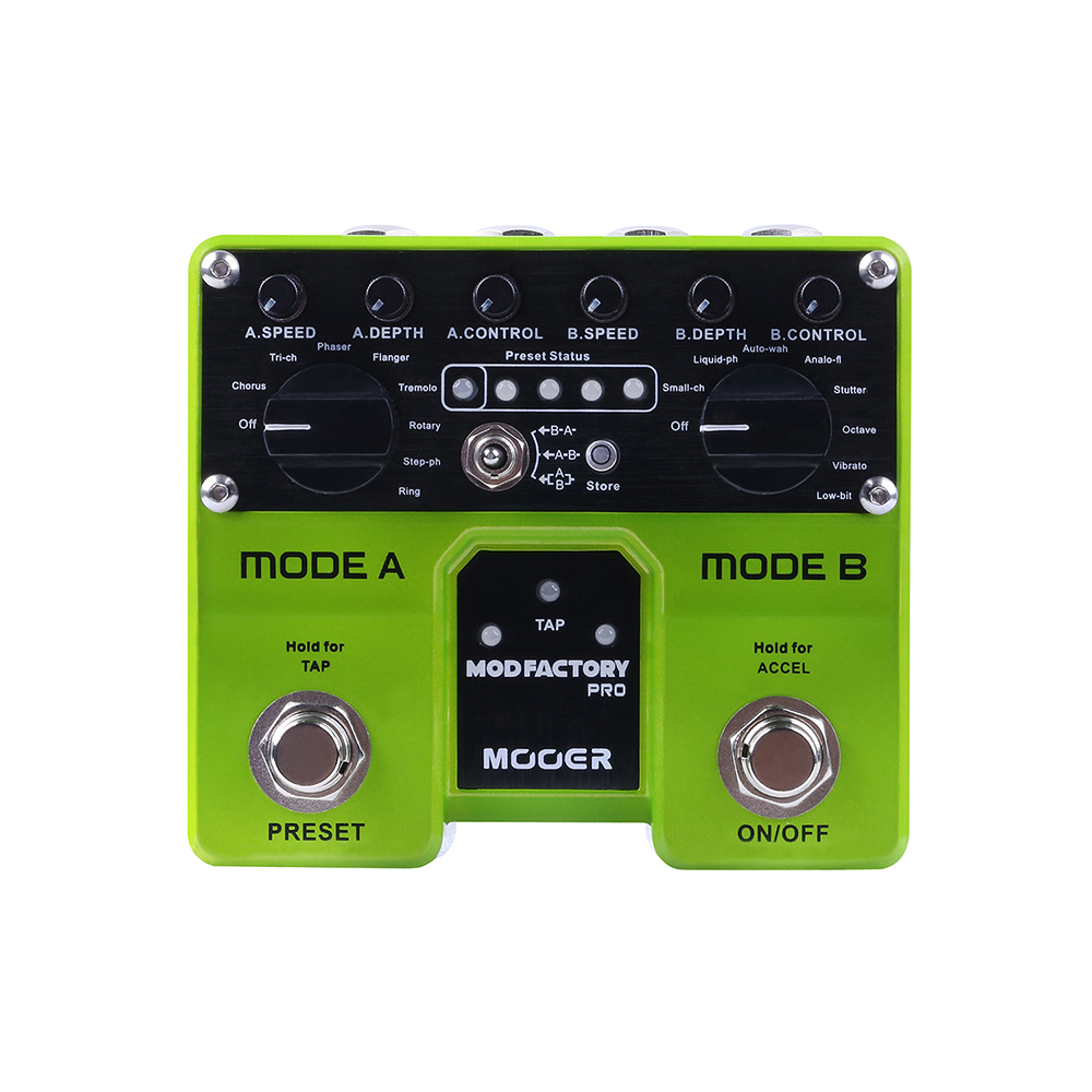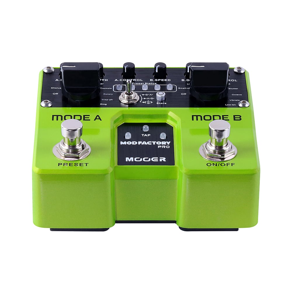 Il nuovo MOD FACTORY PRO di MOOER riunisce due effetti digitali di modulazione di estrema qualità in un doppio pedale molto piccolo e pieno di funzioni. Con 16 diversi effetti di modulazione che coprono tutte le normali esigenze come phasers, chorus e tremolo, fino ad arrivare ad effetti fuori dal comune come ring modulator, filtri lo-fi ed effetti di pitch-shifting, il Mod Factory Pro ha davvero qualcosa da dire a tutti i chitarristi!