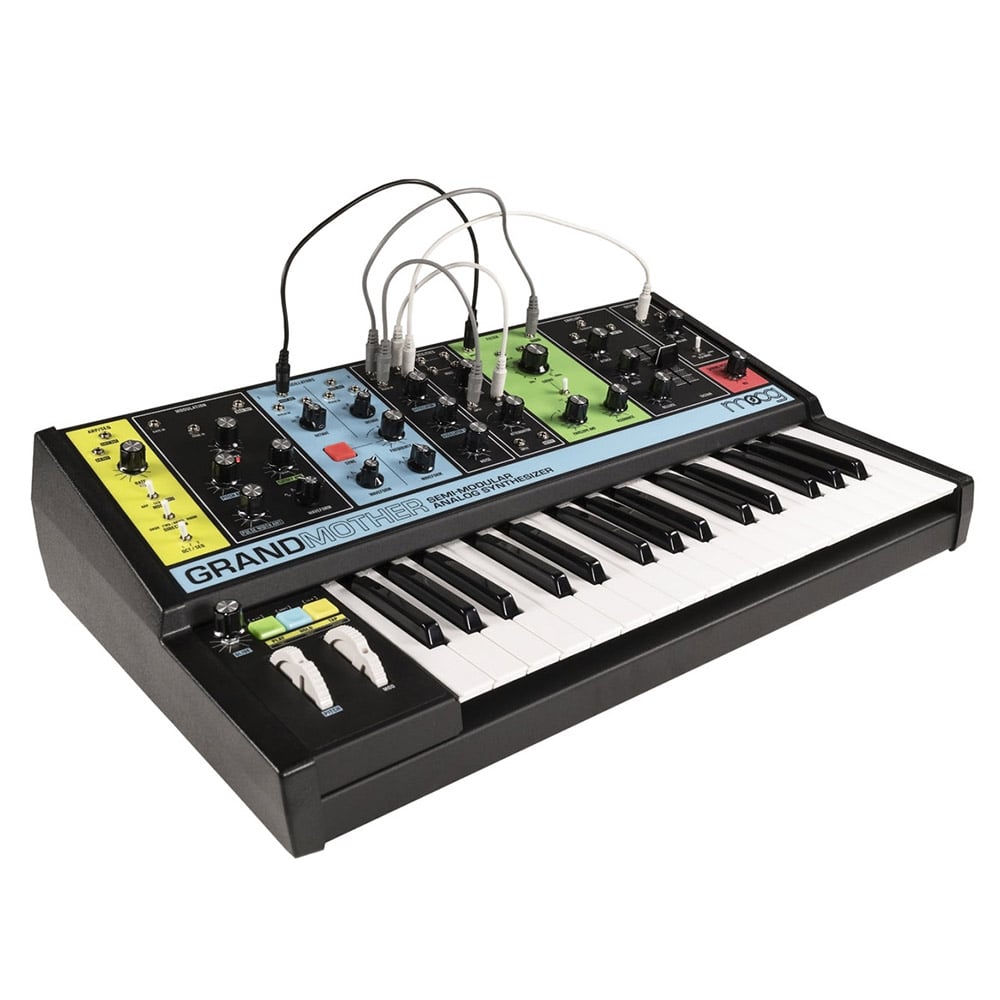 MOOG Grandmother è un sintetizzatore analogico semi-modulare con arpeggiatore, sequencer e riverbero a molla integrati. Lo strumento è accessibile a tutti in modo semplice ed immediato (“no patching required”) con l’eventuale possibilità poi di approfondire la conoscenza delle infinite potenzialità di generazione sonora con il pannello frontale completamente riconfigurabile. La circuiteria del Grandmother, il riverbero a molla e la filosofia generale di questo sintetizzatore traggono ispirazione dai classici sintetizzatori modulari Moog, rendendo questo strumento il completamento ideale per un setup con Mother-32, DFAM o un sistema modulare Eurorack.