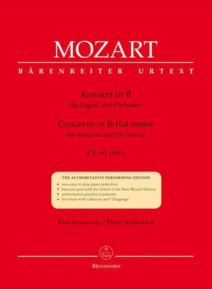 - TITOLO: Concerto for Bassoon and Orchestra in B-flat major K. 191(186e) (Riduzione per fagotto e piano)