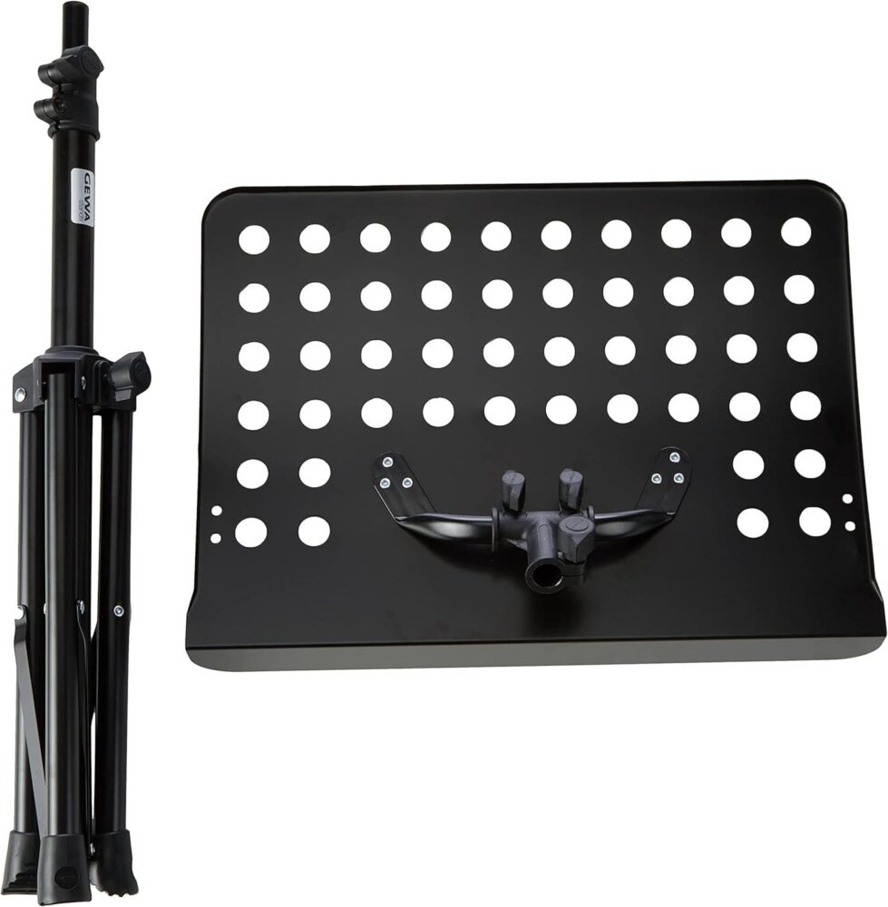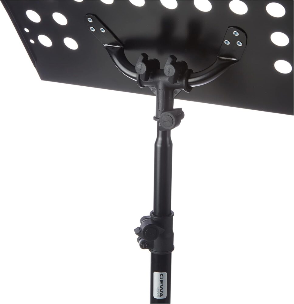 Leggio professionale con appoggio spartiti forato orientabile e regolabile in grado di sostenere carichi notevoli.