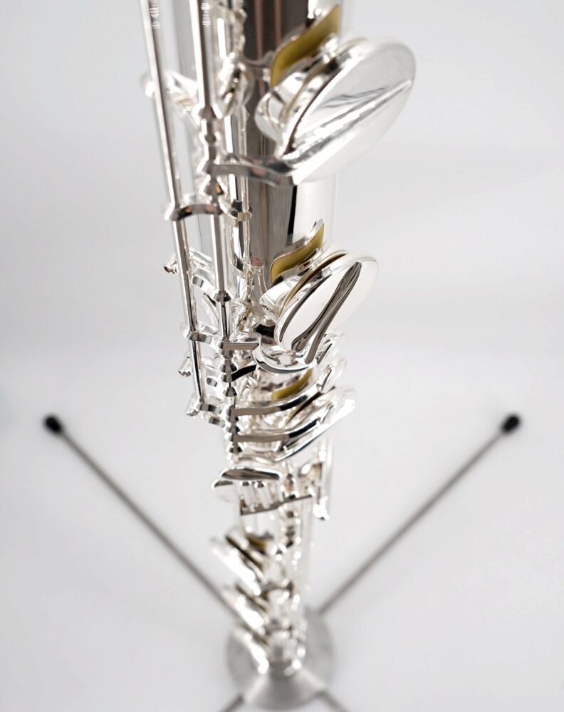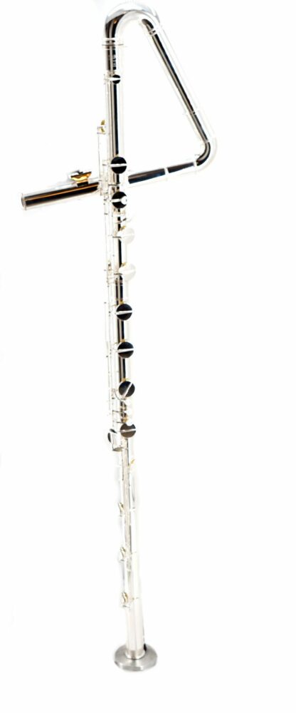 OP-CBFL-888 Opera è un flauto contrabbasso in Do, realizzato interamente in ottone con placcatura argentata. E’ uno strumento professionale concepito per un utilizzo orchestrale e/o solistico, capace di soddisfare le aspettative del musicista. È stato realizzato sia per donare una maggiore presenza timbrica all’interno dell’orchestra, sia per facilitare il flautista nell’esecuzione,  scaricando a terra il peso del flauto.