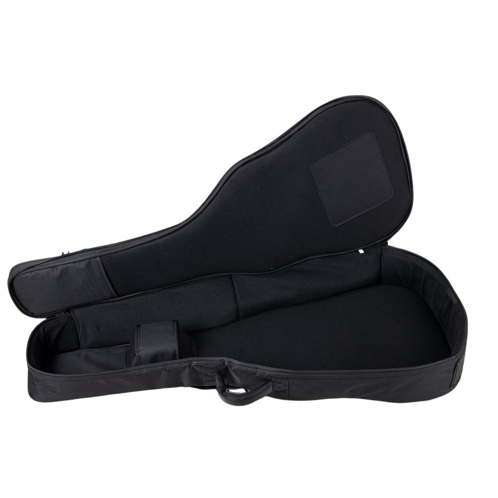 Questa custodia offre una protezione eccezionale grazie alla sua struttura robusta e all’imbottitura in schiuma ad alta densità da 20 mm. Realizzata in Cordura di alta qualità, è resistente agli strappi, idrorepellente e dotata di cerniere impermeabili. Il sistema di protezione del manico (NPS) assicura la massima sicurezza per lo strumento, con protezioni cucite per la paletta, il ponte e il retro. La fodera interna a nido d’ape è morbida e priva di lanugine. Include una grande tasca per spartiti, una tasca accessoria più piccola, un anello per appenderla e un assorbitore di urti per garantire la massima sicurezza.
