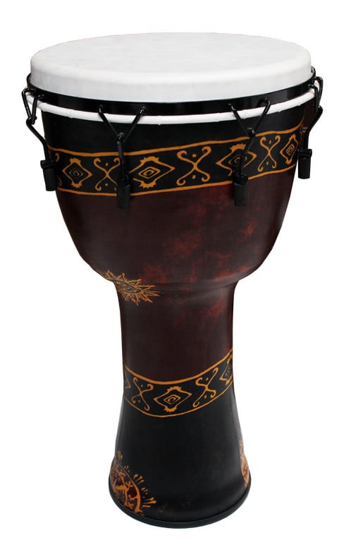 Questo djembe in PVC accordabile meccanicamente ha un nuovo attraente design azteco. E’ dotato di pelle di capra rasata per bassi potenti e toni alti.
