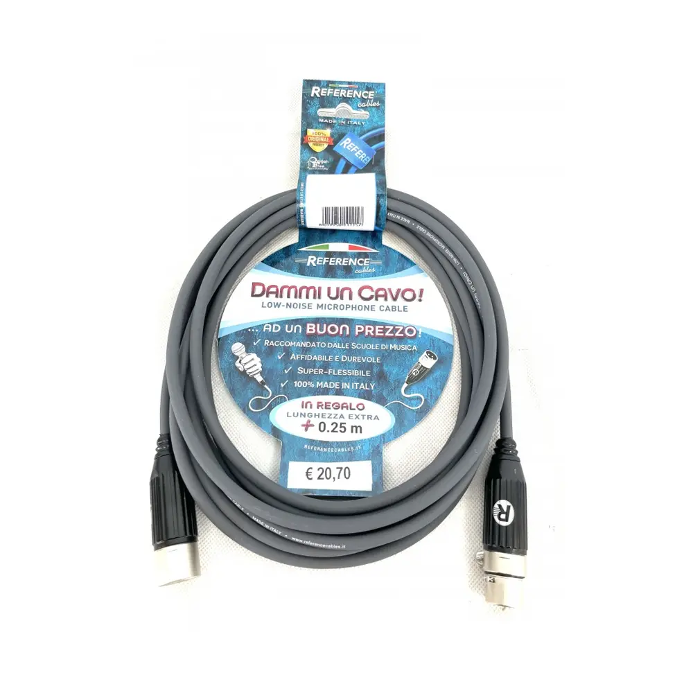 Dammi Un Cavo è il modello entry-level progettato da Reference Cables per consentire a chiunque di conoscere la tecnologia Reference. Un prodotto innovativo, un nuovo target per scegliere un cavo affidabile e duraturo, una soluzione alla portata di tutti. E’ un cavo che sfrutta la ricerca svolta in oltre 30 anni di Reference Cables partendo da una accurata scelta dei materiali al fine di rispettarne il suo standard. Nella sua costruzione trovano identità le fasi più delicate quanto necessarie per permettere la qualità di trasmissione dei dati e l’affidabilità.