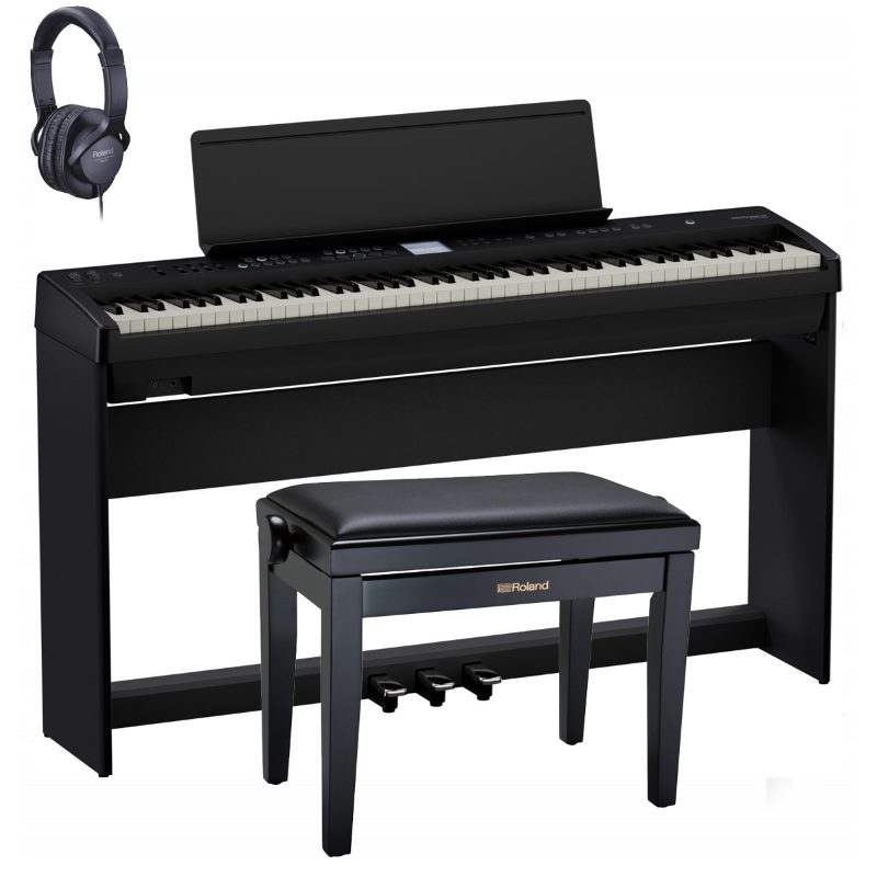 Roland FPE50BK Deluxe Bundle Pianoforte Digitale Portatile 88 Tasti con Supporto Pedaliera Panca e Cuffia