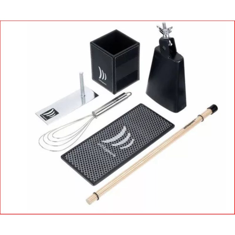 Take Five è un kit di effetti sonori e accessori per cajon velcrabili. Comprende: 1x CB55D campanaccio, 1x PH92 staffa di montaggio percussioni con rod da 9,2 mm, 1x SB250 Scratch Board, 1x SCR250 Scratcher e RO3 rod singolo, 1x CBB10 ”Cajon Brush Boy” portaoggetti