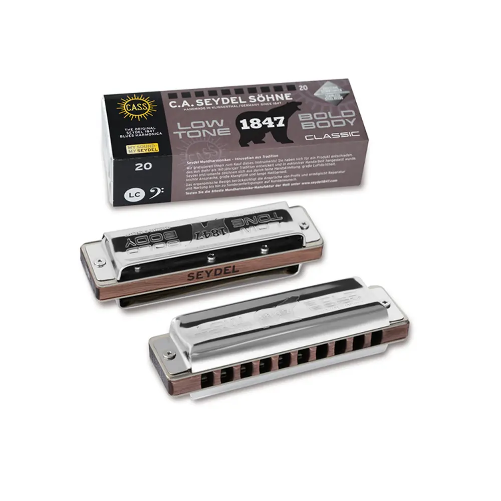 I modelli doppio basso (LL) sono accordati due ottave più in basso rispetto allo standard, rendendo la 1847 LLE di SEYDEL l’armonica diatonica accordata più bassa al mondo.