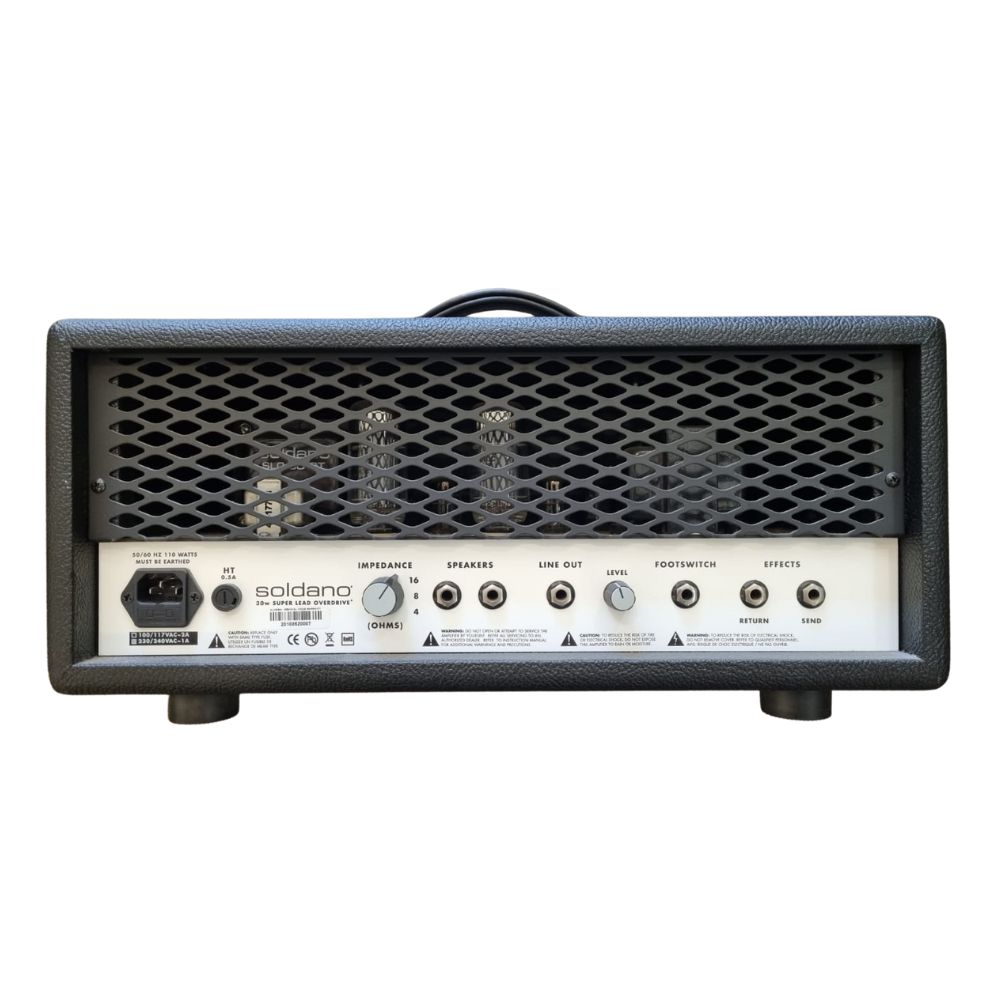 Made in USA – 2020 – 30W all-tube head – 2 channels – Normal/Crunch and Overdrive modes – Soldano Depth control – Tube-buffered FX loop – 3-band EQ – Presence control – Footswitch originale
