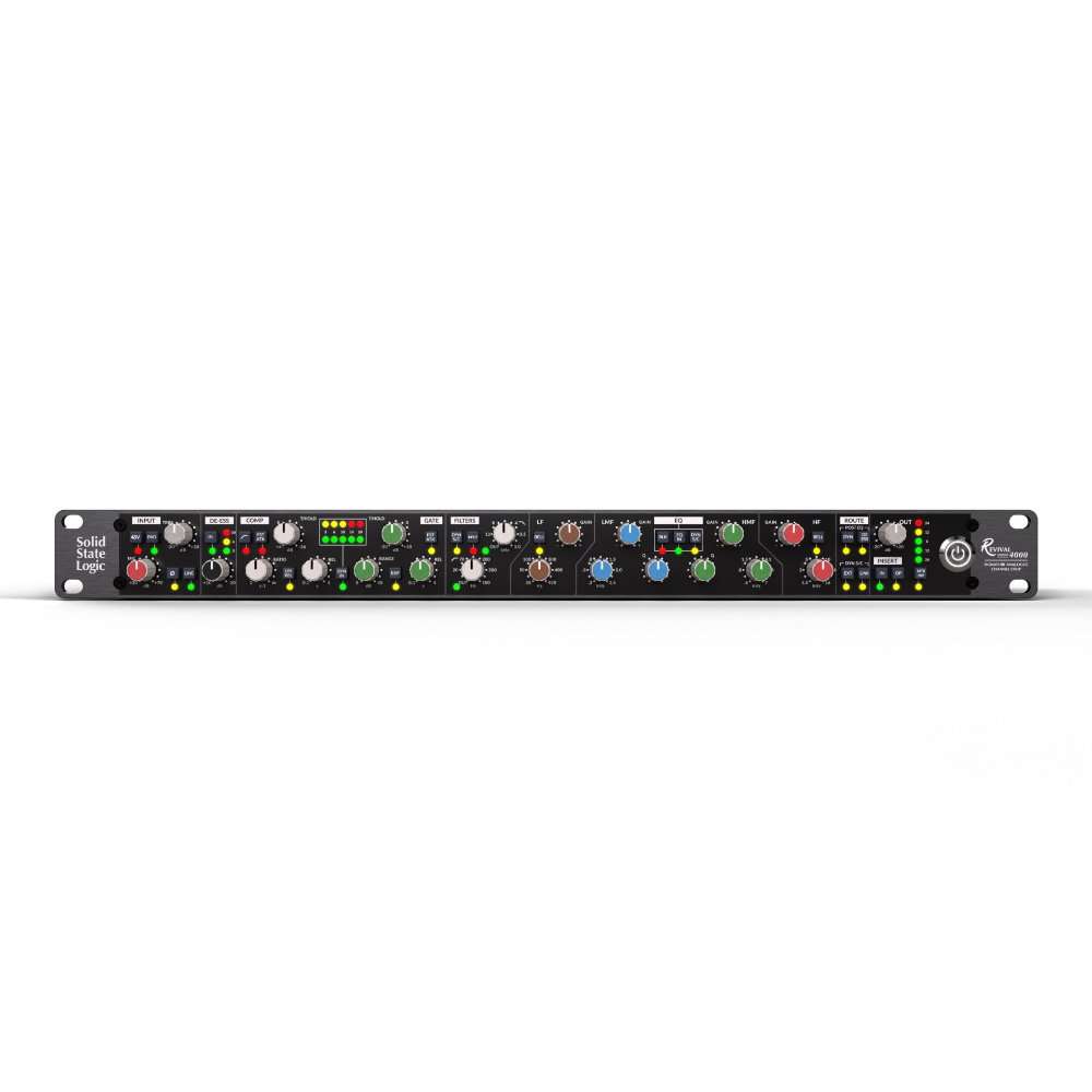 Il Solid State Logic Revival 4000 è un channel strip completamente analogico che riproduce fedelmente il suono delle leggendarie console SSL Serie 4000 B ed E. Con preamp microfonico Jensen, equalizzatore parametrico a 4 bande, Dynamics ispirati al VCA in Classe A, de-esser e filtri passa-alto/passa-basso, offre calore, musicalità e flessibilità professionale. La gestione del segnale include insert bilanciati, sidechain esterno, compressione stereo linkabile e ordinamento personalizzabile dei processori, condensando l’eredità SSL in un elegante chassis 1U rack da 19″.