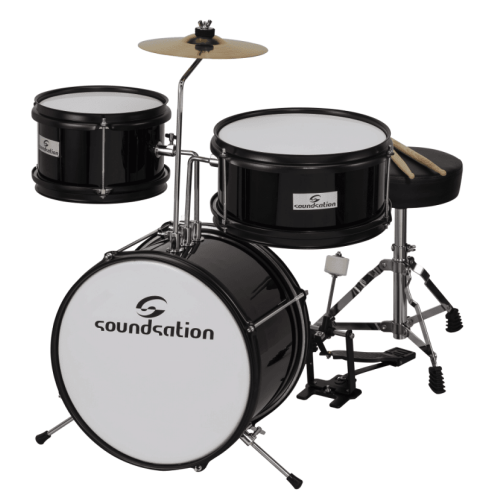 SOUNDSATION JDK313-BK JUNIOR DRUM è una batteria completa in 3 pezzi per bambini, che comprende fusti, hardware e piatto singolo. Le caratteristche tecniche includono, 1 Tom da 8”, Rullante da 10” e grancassa da 13”, fusti in pioppo, meccaniche cromate, pelli, piatto con hardware, pedale grancassa, sgabello e bacchette inclusi.