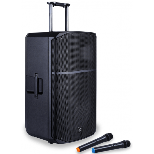 SOUNDSATION PROVIBE 12AIR MP3 BT 2XMIC VHF è una cassa PA portatile in stile Trolley da 12” con batteria integrata, radiomicrofoni ed implementazione con App Mobile. Le caratteristiche tecniche includono, woofer da 12” e driver a compressione da 1”, amplificatore in Classe AB con 800W di potenza a picco, alimentazione a batteria integrata per 7 ore di utilizzo continuativo o corrente, trolley con manico telescopico, 2 radiomicrofoni palmari VHF, mediaplayer con USB/SD-card/Bluetooth, ingressi Mic/Line, effetto Eco, EQ a 5-Bande, controllo tramite app gratuita ”Go-Sound Air” per dispositivi Android e iOS.