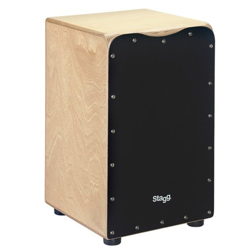 STAGG CAJ-50M-BK CAJON BETULLA FRONTALE NERO + BORSA. Cajon con corpo in betulla 7 strati, lamina frontale in betulla 3 strati nera, spigoli laterali e frontali ergonomici, doppia cordiera regolabile (V-Pattern), piedini in gomma antiscivolo. Include borsa per trasporto imbottita con tasca frontale porta accessori.