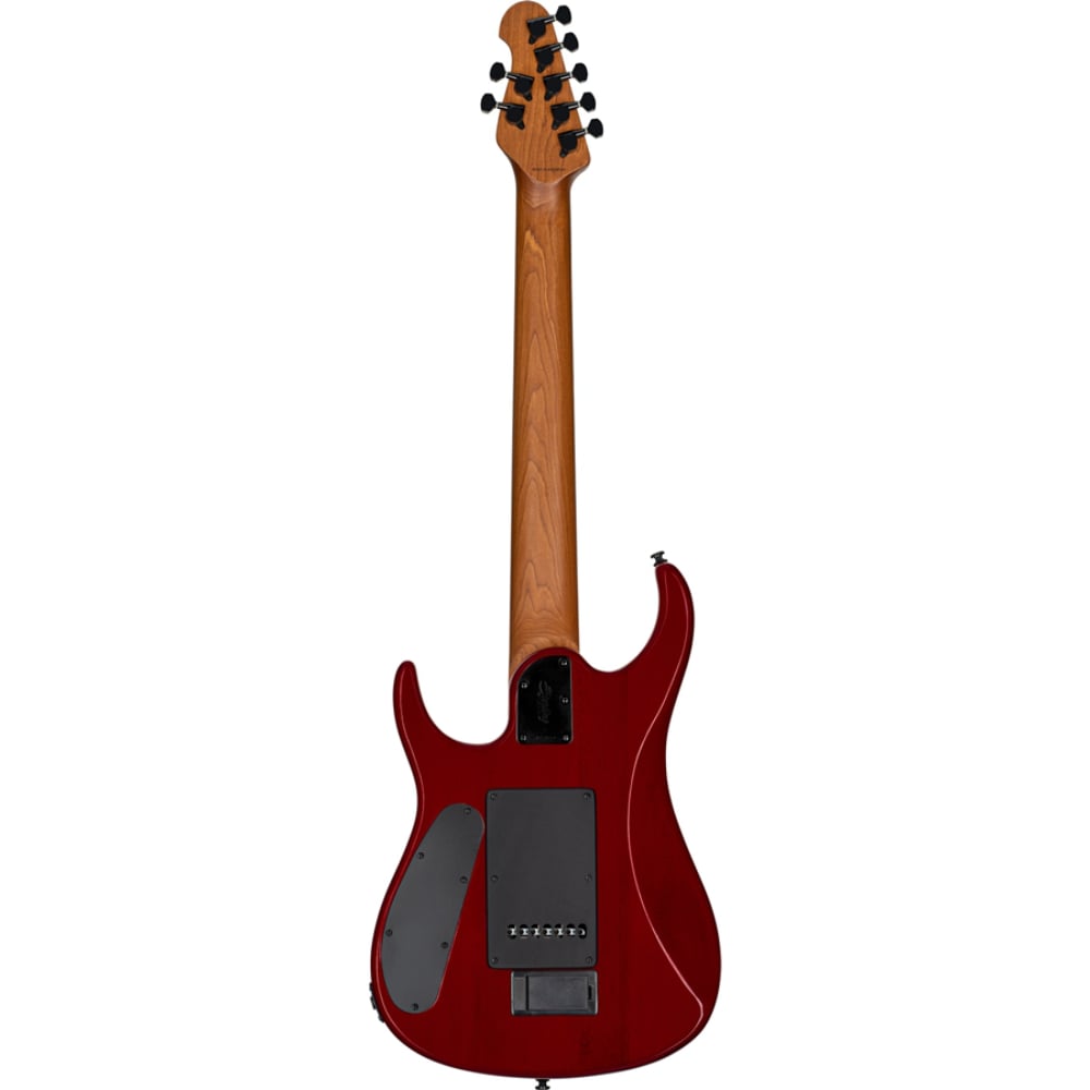 La JP157 Blood Orange Burst di Sterling by Music Man è la chitarra elettrica a 7 corde firmata John Petrucci dei Dream Theater. Con corpo in Nyatoh e top in Acero Spalted, manico in Acero Roasted e tastiera in Ebano a 24 tasti, offre un suono potente e definito. Equipaggiata con pickup DiMarzio Liquifire e Crunch Lab, ponte Modern Tremolo e meccaniche Locking, è perfetta per il chitarrista metal più esigente.