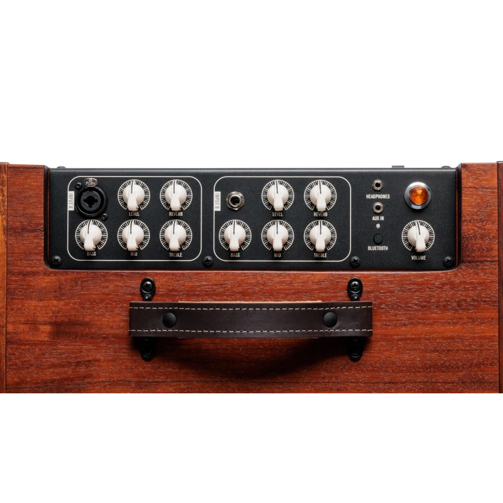 Il Circa 74 è un amplificatore per chitarra e voce firmato Taylor Guitars, progettato per offrire suono caldo, stile raffinato e massima versatilità. Con un altoparlante full-range da 10″ e 150W di potenza, riempie qualsiasi ambiente, dai piccoli locali alle performance domestiche. I doppi ingressi XLR e jack da 1/4″ consentono di amplificare voce e chitarra contemporaneamente, con controlli intuitivi di EQ e riverbero. La connettività Bluetooth lo trasforma in uno speaker per la musica, mentre le uscite XLR, jack e cuffie garantiscono flessibilità in studio e dal vivo. Il tutto racchiuso in un elegante cabinet in mogano dal design mid-century.