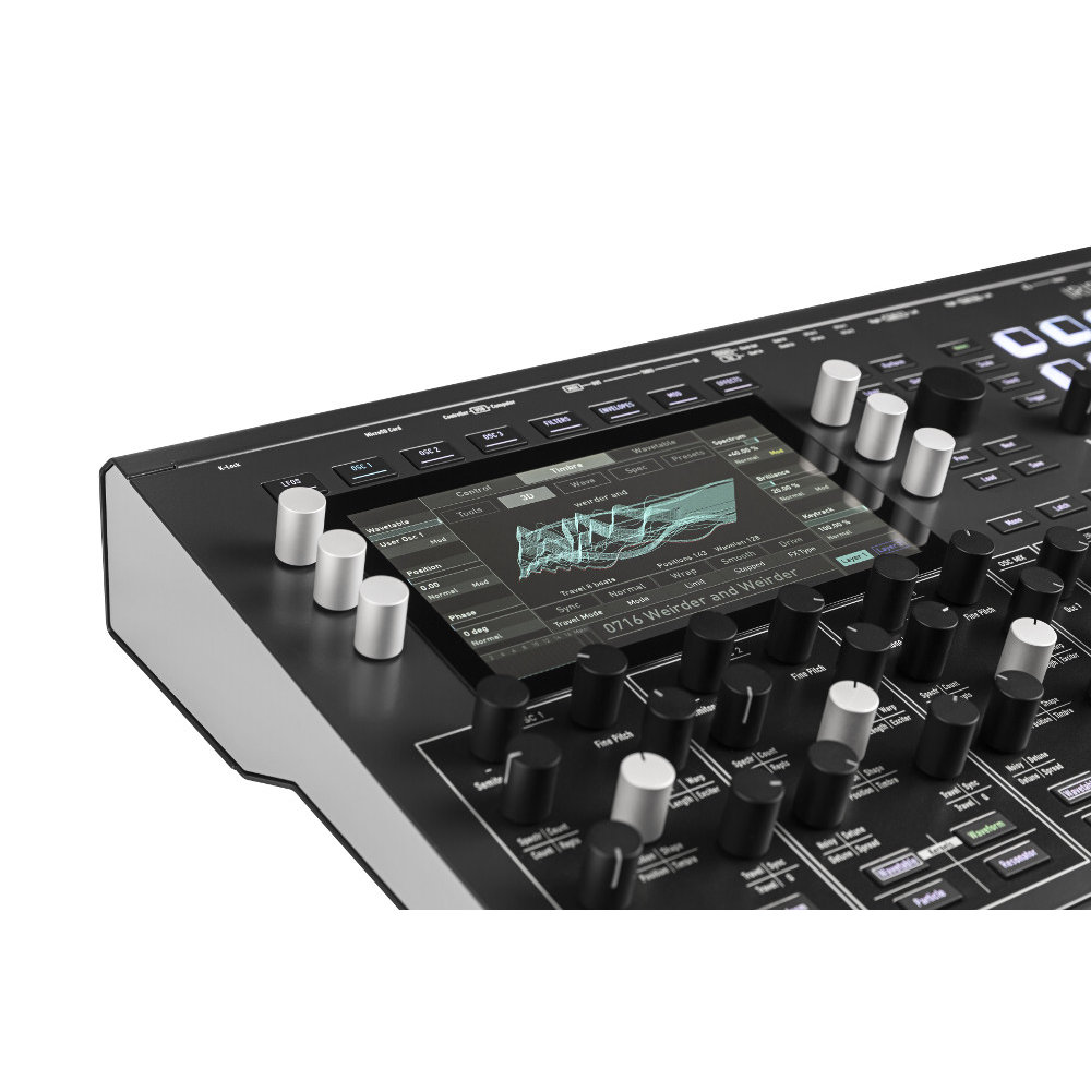 - 3 oscillatori multi mode con modalità Wavetable, Waveform (VA), Particle (Sampling and Granular Sampling), Resonator, Kernels