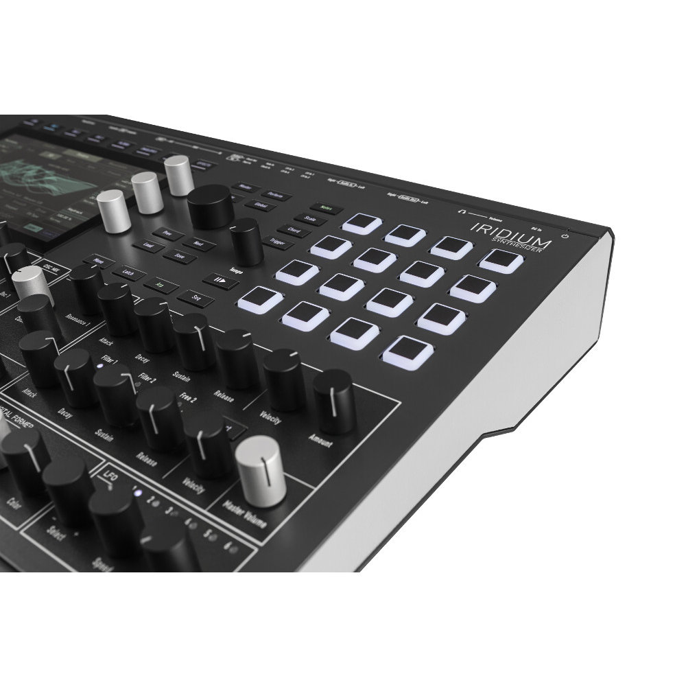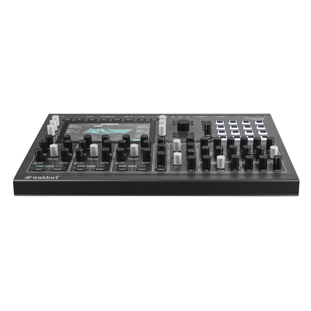Waldorf Iridium è un compatto sintetizzatore desktop basato potente motore del Quantum. Iridium è dotato di tutti gli elementi di sintesi del Quantum in un formato desktop. La combinazione di un potente engine sonoro, un’incredibile flessibilità e funzioni di sound shaping estese fanno dell’Iridium uno dei più potenti synth desktop mai realizzati. L’ampio display touchscreen a colori e l’interfaccia intuitiva rendono l’Iridium comunque facile da utilizzare nonostante la potenza messa a disposizione dall’unità.